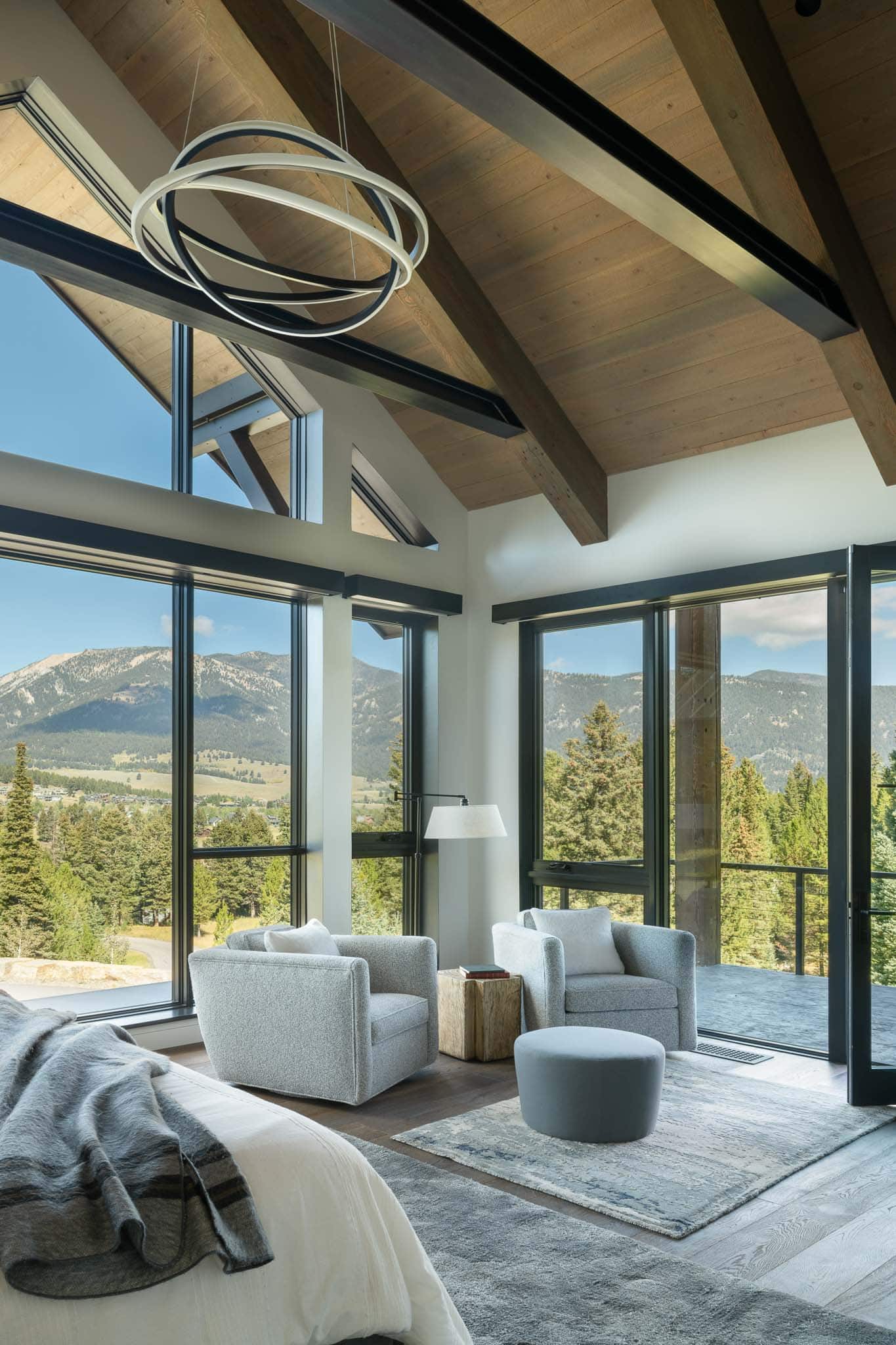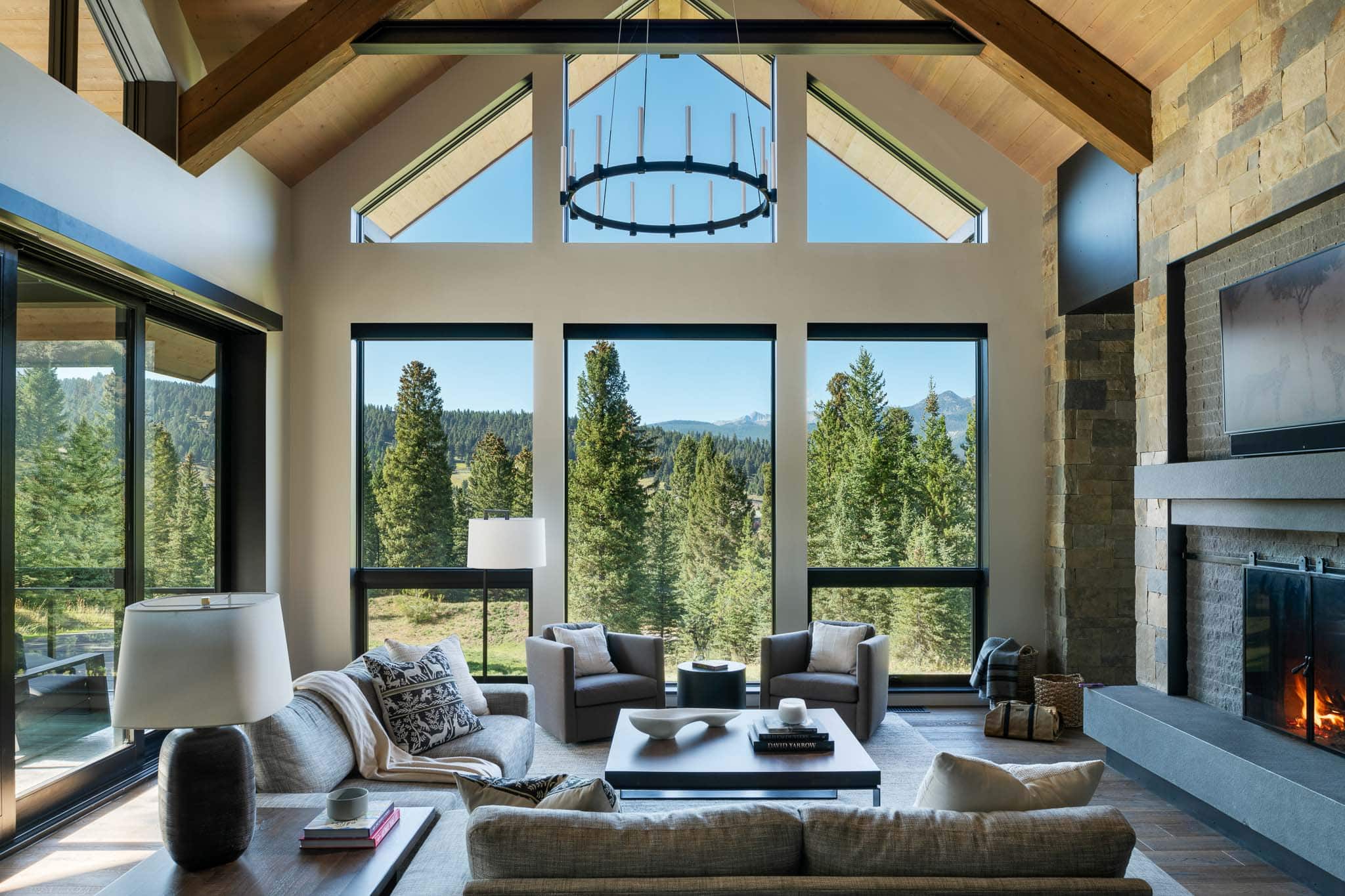 Mountain modern home with custom steel finishes, white oak floors, painted trim, frontier stone, and a gross sq ft of 7,317.